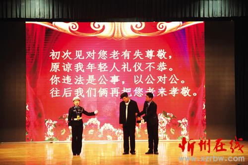 1月27日至29日,偏關(guān)縣公安局交警大隊(duì)交通安全文藝宣傳隊(duì)在隊(duì)長們的帶領(lǐng)下,先后走進(jìn)市實(shí)驗(yàn)中學(xué)、市客運(yùn)中心、國家電網(wǎng)忻州供電分公司進(jìn)行了三場演出,用自編自導(dǎo)自演、群眾喜聞樂見的“漫翰調(diào)”、“二人臺”、北路梆子、民歌等一系列極具地域文化特色的地方小戲、說唱歌舞等曲藝形式進(jìn)行宣傳演出,贏得滿堂喝彩,場場掌聲雷動。作為春節(jié)回家路上的一道文化盛宴,這次春節(jié)前的平安出行警示教育“送安全下鄉(xiāng)”巡演是我市公安交警精心策劃、編排的春運(yùn)交通安全宣傳行動之一。28日,市客運(yùn)中心人頭攢動,熙熙攘攘,大廳外懸掛的橫幅標(biāo)語“守護(hù)您的平安出行,保障道路安全暢通是每一位交警的神圣職責(zé)!”格外醒目。候車大廳里,暖意融融,市公安局交警支隊(duì)組織的春運(yùn)交通安全文藝演出正在進(jìn)行,交警版的民間小調(diào)《拜大年》、小品《警鐘聲聲》、雙簧《二愣子》等節(jié)目令人賞心悅目、捧腹不止。在歡笑之余,提醒和教育廣大群眾自覺抵制不文明、不安全交通行為,觀看演出的旅客和客車司機(jī)紛紛感慨,這樣的宣傳教育生動形象,人人愛看且耐人尋味,警示作用很大。