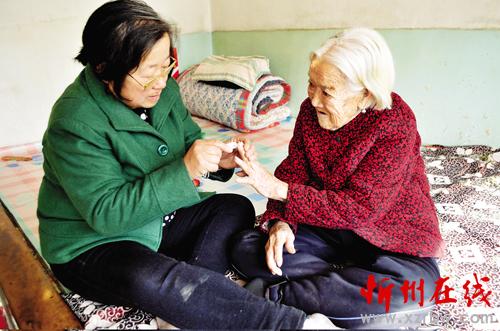 智建英為婆婆修剪指甲(資料圖)