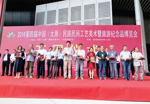 本報訊 6 月9 日至12 日,由中國民族民間工藝美術(shù)家協(xié)會、山西省經(jīng)信委、省旅游局、省文聯(lián)、省貿(mào)促會、山西中華文化促進(jìn)會、山西廣播電視臺、山西日報傳媒集團(tuán)共同主辦,山西省民間文藝家協(xié)會、省民間工藝美術(shù)家協(xié)會等承辦的2016 第四屆中國(太原)民族民間工藝美術(shù)暨旅游紀(jì)念品博覽會在太原煤炭交易中心舉行。來自全國20 多個省市及港臺地區(qū)的200 多家工藝美術(shù)和旅游紀(jì)念品企業(yè)參展,薈萃展出了數(shù)千件工藝美術(shù)大師的精品力作。