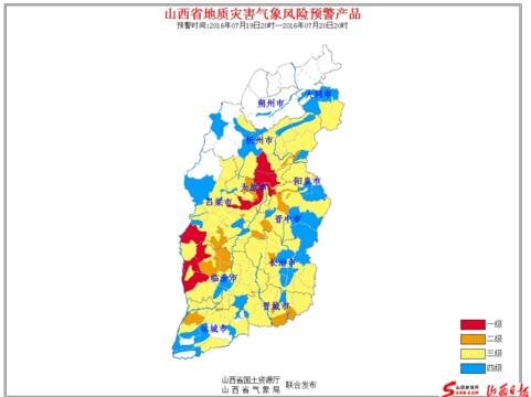 山西新聞網(wǎng)7月19日訊 今日下午,山西省國(guó)土資源廳和山西省氣象局聯(lián)合發(fā)布地質(zhì)災(zāi)害氣象風(fēng)險(xiǎn)預(yù)警。