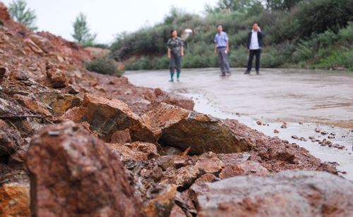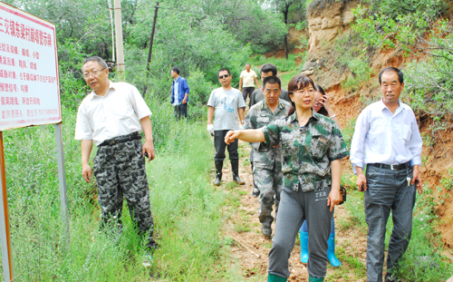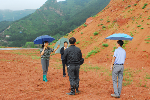 時(shí)近中午,天色又陰沉了下來,一行人馬又急匆匆的趕赴三交鎮(zhèn)。在路邊的一個(gè)小飯館,每人湯面一碗,眾人涼菜一碟便草草吃罷午飯。沒有稍作休息,便和鎮(zhèn)長(zhǎng)李志軍、鎮(zhèn)黨委書記于永清一起趕往地質(zhì)災(zāi)害隱患點(diǎn)---東梁村。由于該村地處深山腹地,且地貧人稀,至今沒有開通對(duì)外的通訊。走在坡陡泥濘的山路上,一行人員踉蹌前行,有人打趣的喊到:“小心坐了滑梯”。在一戶村民居住的土窯洞地質(zhì)災(zāi)害隱患點(diǎn),工作人員完成排查任務(wù)后,向村民宣講了政府關(guān)于搬遷的相關(guān)補(bǔ)貼政策,鼓勵(lì)村民積極行動(dòng)起來,早日搬遷。
