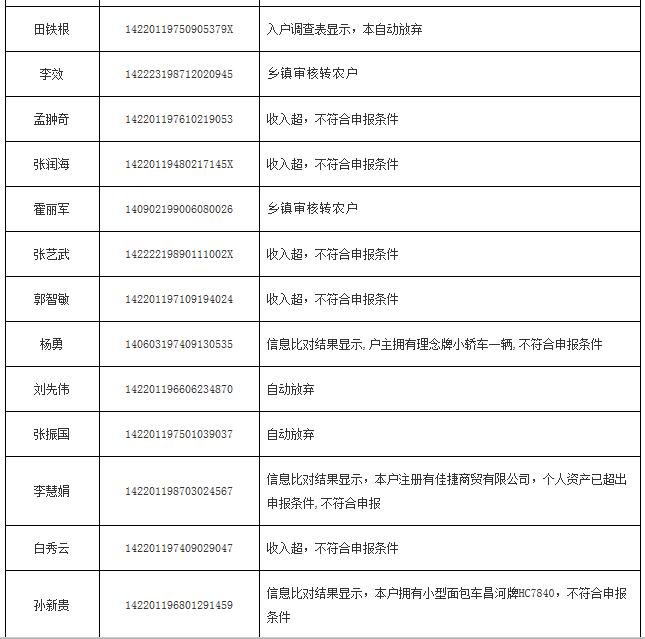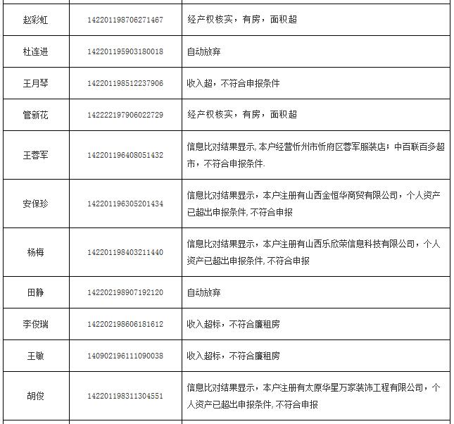 2014年申報公(廉)租房不符合保障條件花名表