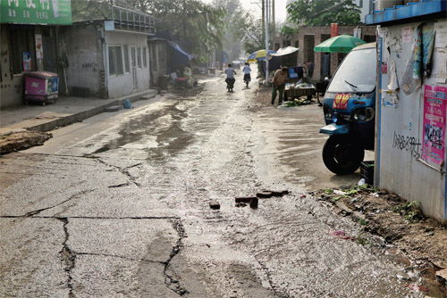 漏水處位于龍崗街龍崗小區(qū)門(mén)前15米處,已經(jīng)形成了一個(gè)一米見(jiàn)方的大坑,自來(lái)水源源不斷地從坑里流出,裹著泥沙沿街流去。在現(xiàn)場(chǎng),居民何女士告訴記者,自來(lái)水已經(jīng)流了一天一夜,他們小區(qū)門(mén)前形成了小溪,想要過(guò)馬路必需踩著墊腳石,目前最擔(dān)心的是由于流出的水多半滲入了地下,容易導(dǎo)致地質(zhì)塌陷,希望相關(guān)部門(mén)盡快修復(fù)。記者隨即撥打了自來(lái)水公司報(bào)修電話,反映了上述情況,工作人員答復(fù)會(huì)派人盡快修理。到記者發(fā)稿,破裂的水管已修復(fù)。圖為7月29日被水浸泡的龍崗街(張志遠(yuǎn))