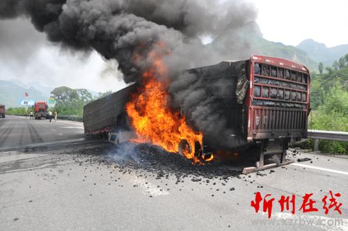2016年8月6日上午11時20分,高速交警二支隊九大隊值班室接警陳:在五保高速(保五方向)32公里處有半掛車起火,請求出警。接到報警后,值班人員立即上報隊領導,值班教導員牛治國立即安排部署,派出事故中隊立即趕赴現(xiàn)場,秩序中隊在耿鎮(zhèn)收費站進行分流。