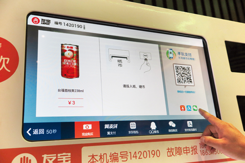 智能售貨機利用互聯(lián)網(wǎng)實現(xiàn)智慧購物與智慧營銷的合二為一,現(xiàn)在網(wǎng)絡(luò)化和指尖化的趨勢越來越強,人們出門即使忘帶錢包,也不會忘帶手機,而且只要帶上手機,便擁有了錢包的功能。在智能售貨機中,消費者可以通過手機在線支付的方式輕松購物,而經(jīng)營者也可以通過手機輕松經(jīng)營。“你看,這里顯示8月23日上午10點21分在和平街開萊欣悅購物廣場編號為1420190的機子通過在線支付的方式售出一瓶脈動飲料?!崩钔钢氖謾C界面向記者解釋。原來,公司負責(zé)人、運營人員以及補貨人員的手機都與智能售貨機進行了綁定,在他們的手機上,可以顯示每臺智能售貨機的實時情況,比如哪臺售貨機的哪種商品賣完了需要補貨,哪臺售貨機出現(xiàn)了網(wǎng)絡(luò)故障等等,相關(guān)人員看到后便可立刻趕往解決問題。通過這種網(wǎng)絡(luò)化的運營和銷售,友寶智能售貨忻州運營中心不需要額外租賃辦公場所、也不需要過多的管理人員,可以最大限度節(jié)約成本,而且這也使整個銷售過程完全透明化,有利于人員之間的管理。