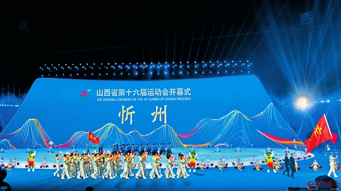 圖為開幕式上,忻州代表隊(duì)精神抖擻、步伐矯健地走進(jìn)體育場(chǎng),向主席臺(tái)和觀眾揮手致意。 石 蔚攝