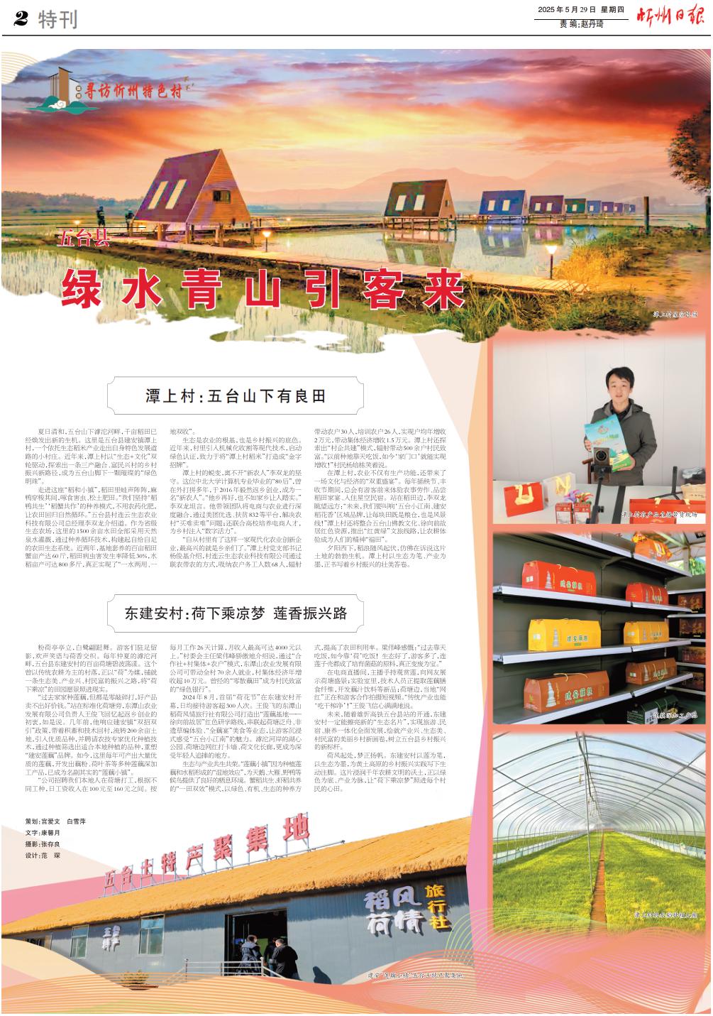 在潭上村,農(nóng)業(yè)不僅有生產(chǎn)功能,還帶來了一場文化與經(jīng)濟的“雙重盛宴”。每年插秧節(jié)、豐收節(jié)期間,總會有游客前來體驗農(nóng)事勞作、品嘗稻田家宴、入住星空民宿。站在稻田邊,李雙龍?zhí)魍h方:“未來,我們要叫響‘五臺小江南、建安稻花香’區(qū)域品牌,讓每塊田既是糧倉,也是風景線!”潭上村還將整合五臺山佛教文化、徐向前故居紅色資源,推出“紅黃綠”文旅線路,讓農(nóng)耕體驗成為人們的精神“福田”。