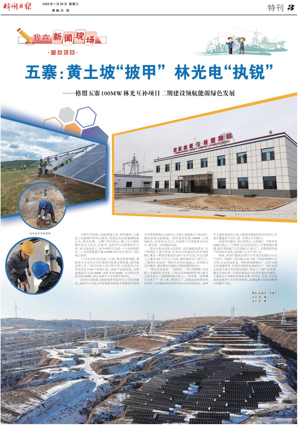 ——格盟五寨100MW林光互補項目二期建設(shè)領(lǐng)航能源綠色發(fā)展
