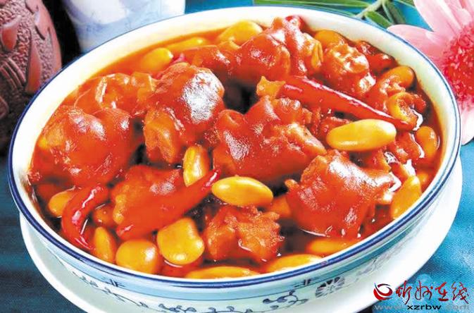 五寨豬蹄味美色艷,讓人看了直流口水,主要材料有豬蹄、花生、香料、香菜等,是我國典型的傳統(tǒng)熟肉制品,豬蹄營養(yǎng)豐富,含有豐富的膠原蛋白,經(jīng)常食用,有養(yǎng)顏、抗衰老的保健作用,加之其具有極佳的適口性和獨特的風味,深受大家的喜愛。
