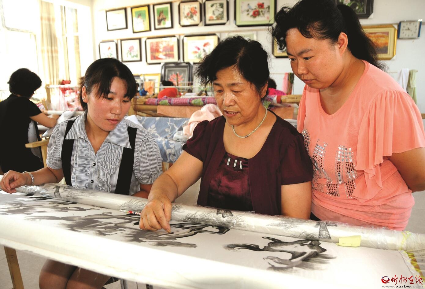 代縣易地扶貧移民小區(qū)婦女們正在參加刺繡技藝培訓(xùn)。石俊文 攝