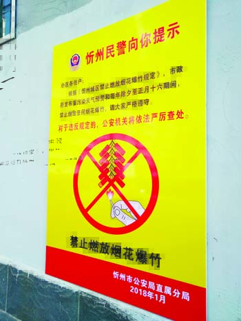 近日,細(xì)心的市民一定會(huì)注意到,各居民小區(qū)都張貼了春節(jié)期間禁止燃放煙花爆竹的民警提示。作為城市的一員,廣大市民一定要遵守《忻州城區(qū)禁止燃放煙花爆竹規(guī)定》,令行禁止,以實(shí)際行動(dòng)保衛(wèi)城區(qū)來之不易的良好大氣環(huán)境,過一個(gè)文明的春節(jié)。(魯明強(qiáng) 攝)