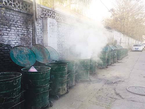 11月19日上午,記者在城區(qū)長(zhǎng)征西街南巷看到,鐵皮垃圾桶內(nèi)濃煙滾滾,能明顯聞到垃圾焚燒散發(fā)出的刺鼻氣味,嚴(yán)重影響周?chē)用竦纳睢?jù)了解,垃圾平時(shí)都會(huì)在垃圾回收站統(tǒng)一進(jìn)行處理,今早突然發(fā)現(xiàn)該現(xiàn)象,希望相關(guān)部門(mén)加大監(jiān)管力度,避免類(lèi)似事情發(fā)生,污染城市空氣環(huán)境。劉鑫林 攝