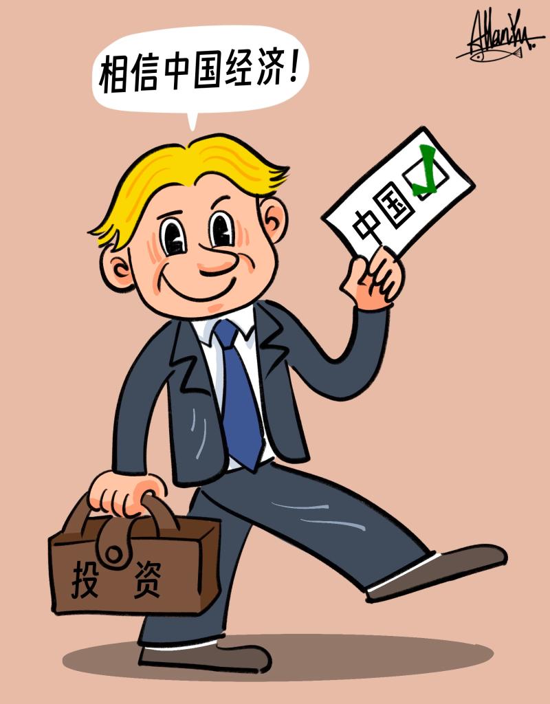 中國市場不是“可選項”而是“必選項”。外資加碼在華投資,外商深耕中國市場,國際機構(gòu)接連上調(diào)中國經(jīng)濟增長預(yù)期,共同對中國經(jīng)濟投下“信任票”。對于理性的觀察家來說,與唱衰中國的“唱將”們靠嘴鼓噪相比,這些用腳投下的“信任票”更具說服力。(漫畫:于艾岑;記者:高文成)