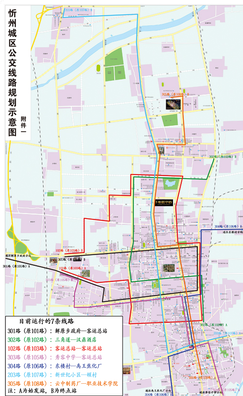 途經(jīng)站點(diǎn):火車站→云中路小學(xué)→和平廣場(chǎng)→市人民銀行→忻州師院→建設(shè)路口→忻州市供水公司→客運(yùn)中心→解原村口→大西高鐵站→小奇村口→北趙村口→河拱村→頓村→旭來街口,共15個(gè)站點(diǎn);