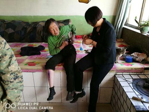 5月16日,忻州市衛(wèi)計委副主任楊春枝帶著黨支部部分黨員和忻州市中醫(yī)院的醫(yī)護人員再次趕赴到扶貧點寧武縣涔山鄉(xiāng)漚泥灣村,一進村她(他)們連口水也沒有來得及喝,就安排中醫(yī)院醫(yī)護人員給村民們進行體檢,楊主任和支部黨員就組織村委在村的6名黨員干部召開維護核心見諸行動專題黨課,她(他)們共同重溫黨章,面對黨旗舉手宣誓,楊主任親自上臺主講了一堂生動的黨課。隨后,她(他)們再次看望了貧困戶,在幫扶聯(lián)系貧困戶張存花家中,楊春枝主任從包里掏出自費購買的膏藥,并親手扶起衣服給老人貼在患處。“你們大老遠的每次都來看望我,上次我說腰疼,這次就給我?guī)砹烁嗨?,還親手給我貼上,不知道該怎樣感謝呀,這閨女就是比親閨女都親……”寧武縣涔山鄉(xiāng)漚泥灣村80歲的殘疾貧困戶張存花緊緊拉著扶貧干部忻州市衛(wèi)計委副主任楊春枝的手,激動地久久不肯松開。(郝法林 米永平)