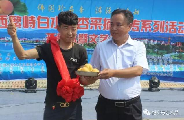 7月2日上午,在山西省忻州市繁峙縣趙家莊村召開的“佛國珍品香 滹源大杏甜”——山西繁峙白水大杏采摘宣傳系列活動開幕式上進行的杏王評比、拍賣活動中,趙家莊村農民劉潤和家選送的白水大杏以225克、色、形、味俱佳而力挫群雄獲得本次杏王稱號。隨后,在杏王拍賣儀式中以5880元人民幣的價格被繁峙某電子商務公司購得。