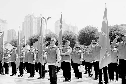 圖為國(guó)網(wǎng)忻州供電公司黨員服務(wù)隊(duì)進(jìn)行集體宣誓。