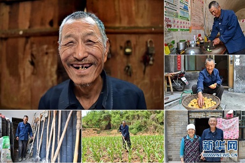 李增福,男,1949年出生,山西省長治市潞城區(qū)上黃村人,自己和老伴都患有較嚴重的慢性病,家里6口人靠種植6畝玉米地為生,生活貧困。2016年女兒和女婿參加了村里組織的脫貧技能培訓并開了一家特色面食店,家里的日子逐漸好了起來。 左上:李增福肖像;右上:李增福在切菜;右中:李增福在晾曬剛摘的杏;右下:李增福和老伴合影;下中:李增福在田地里鋤草;下左:李增福在挑選農具(拼版照片,6月11日攝)。 地處晉東南的山西省長治市,位于由太行山、太岳山環(huán)繞而成的上黨盆地中。在群山中、崖壁上,許多村莊自然條件惡劣,基礎設施落后,脫貧致富是大山深處人們的迫切心愿。 近年來,一場場脫貧攻堅戰(zhàn),在一個個深山村打響。政府全力探索脫貧路徑的同時,山區(qū)百姓因地制宜,靠自己的雙手和智慧走上致富路,交出了一份扎實的脫貧答卷。 記者在太行山、太岳山一路尋訪,記錄下多位70歲老人的生活。這些共和國的同齡人,親歷了山鄉(xiāng)的巨變,見證著長治山區(qū)脫貧攻堅偉大工程的一步步推進。 新華社記者 曹陽 攝