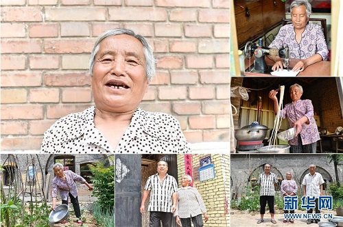 鄭引蘭,女,1949年出生,山西省長治市潞城區(qū)西靳村人,2015年因家人患病而被納入建檔立卡貧困戶。現(xiàn)在,多項扶貧政策讓全家人的生活有了明顯改善,當?shù)卣畮椭7扛脑斓母G洞也即將完工。 左上:鄭引蘭肖像;右上:鄭引蘭在使用縫紉機;右中:鄭引蘭在廚房盛飯;右下:鄭引蘭(中)一家人合影;下中:鄭引蘭和兒子走出家門;下左:鄭引蘭在院子里給植物澆水(拼版照片,6月12日攝)。 地處晉東南的山西省長治市,位于由太行山、太岳山環(huán)繞而成的上黨盆地中。在群山中、崖壁上,許多村莊自然條件惡劣,基礎設施落后,脫貧致富是大山深處人們的迫切心愿。 近年來,一場場脫貧攻堅戰(zhàn),在一個個深山村打響。政府全力探索脫貧路徑的同時,山區(qū)百姓因地制宜,靠自己的雙手和智慧走上致富路,交出了一份扎實的脫貧答卷。 記者在太行山、太岳山一路尋訪,記錄下多位70歲老人的生活。這些共和國的同齡人,親歷了山鄉(xiāng)的巨變,見證著長治山區(qū)脫貧攻堅偉大工程的一步步推進。 新華社記者 曹陽 攝