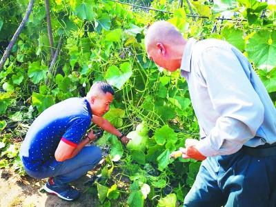 山西省總工會派駐宋家溝村第一書記楊濤(左)幫助村民引進(jìn)葫蘆種植,以豐富旅游產(chǎn)品。光明日報記者 李建斌攝