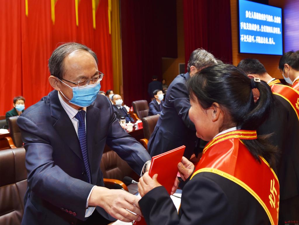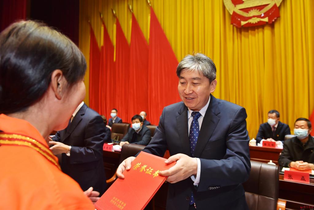 朱曉東為受表彰者頒發(fā)獎(jiǎng)牌和榮譽(yù)證書。馮曉磊 攝