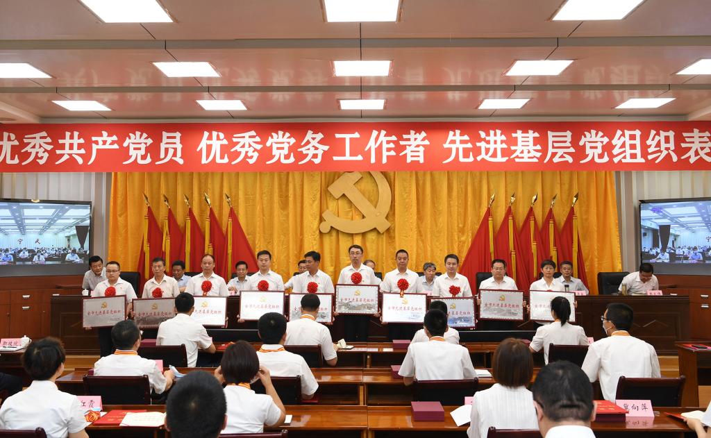 上午8時(shí)30分,大會(huì)正式開始,全體起立,奏唱國(guó)歌。來(lái)自全市各行各業(yè)、在工作中取得優(yōu)異成績(jī)的99名共產(chǎn)黨員、100名黨務(wù)工作者和100個(gè)基層黨組織,分別被授予“全市優(yōu)秀共產(chǎn)黨員”“全市優(yōu)秀黨務(wù)工作者”“全市先進(jìn)基層黨組織”榮譽(yù)稱號(hào)。受到表彰的優(yōu)秀個(gè)人和先進(jìn)集體代表先后上臺(tái)領(lǐng)獎(jiǎng),會(huì)場(chǎng)響起熱烈掌聲。