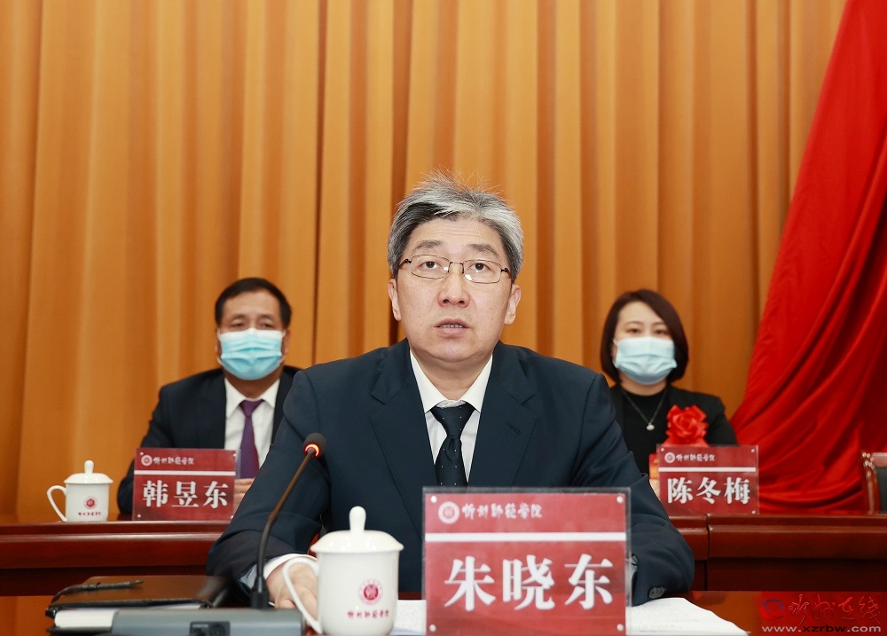朱曉東指出,長期以來,忻州師院在黨委的堅強領導下,凝心聚力肩負新使命,集思廣益展現(xiàn)新業(yè)績,培養(yǎng)了一批又一批思想素質高、業(yè)務技能好、實踐能力強的優(yōu)秀中小學教師和建設人才,在服務地方經濟社會發(fā)展中提供了忻師智慧、彰顯了忻師力量、作出了忻師貢獻。希望忻州師院立足忻州、胸懷天下,把握大勢、放眼未來,向著建設特色鮮明、國內知名的高水平應用型師范大學這一目標持續(xù)前進。一是要強化黨的領導,始終把黨的政治建設擺在首位,認真落實管黨治黨、辦學治校的主體責任,全面加強黨的各項建設,不斷推進黨的建設新的偉大工程,為實現(xiàn)學院發(fā)展藍圖提供堅強的政治和組織保證。二是要強化奮進意識,深入學習貫徹習近平總書記關于教育工作的重要論述和全國教育大會精神,認真落實立德樹人根本任務,持續(xù)實施“1233”發(fā)展戰(zhàn)略,特別是要厚植辦學情懷,深化改革創(chuàng)新,彰顯本土特色,做強優(yōu)勢學科,強化交流協(xié)作,實現(xiàn)城市與學校的交相輝映、共進共榮。三是要強化服務意識。師院新校區(qū)建成使用,表明了市委、市政府一以貫之興教育、強教育的鮮明態(tài)度,更是為忻州師院的明天加油鼓勁。希望忻州師院進一步強化服務意識,與區(qū)域發(fā)展布局同頻共振,在服務中心大局中精準發(fā)力,著力提升服務地方經濟社會發(fā)展的能力和水平,為忻州全方位推動高質量發(fā)展作出新的更大貢獻。市委、市政府將一如既往地把教育擺在優(yōu)先發(fā)展的戰(zhàn)略位置,一如既往地支持忻州師院的建設和發(fā)展,讓忻州師院越辦越好。