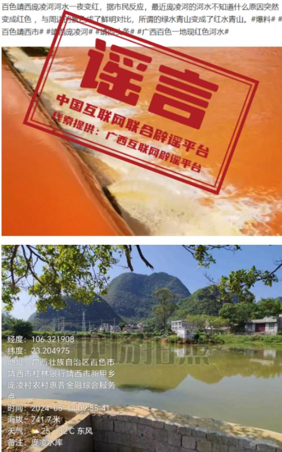 謠言:廣西百色靖西龐凌河河水一夜變紅?