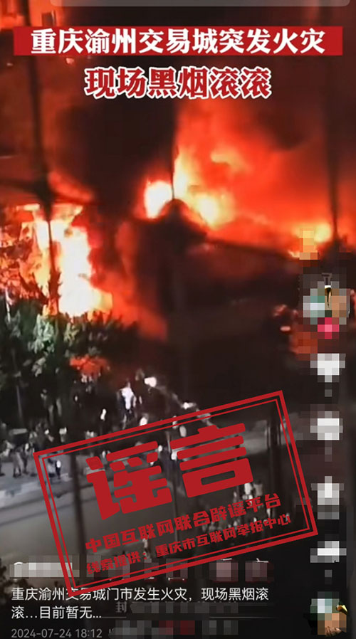 謠言:重慶渝州交易城突發(fā)火災(zāi)?