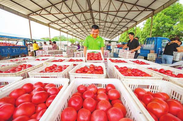 6月2日,夏縣廟前鎮(zhèn)楊村西紅柿喜迎大豐收,村民抓緊采摘包裝發(fā)往全國各地。該村已有20年種植西紅柿歷史,近年來經(jīng)過產(chǎn)業(yè)結(jié)構(gòu)調(diào)整、優(yōu)選育種,種植面積不斷擴(kuò)大,西紅柿目前暢銷北京、上海、西安等地,菜農(nóng)借此每畝可收入5000元以上。(楊建峰攝)