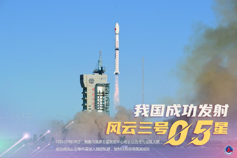 7月5日7時28分,我國在酒泉衛(wèi)星發(fā)射中心用長征四號丙運載火箭,成功將風(fēng)云三號05星送入預(yù)定軌道,發(fā)射任務(wù)獲得圓滿成功。新華社發(fā)(汪江波 攝)