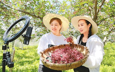 今年,甘肅省隴南市武都區(qū)的百萬畝花椒喜獲豐收,隴南市相關(guān)部門及時(shí)組織本土電商人才深入田間地頭,通過電商平臺(tái)和直播帶貨方式助農(nóng)銷售。圖為日前,網(wǎng)絡(luò)主播在武都區(qū)郭河鄉(xiāng)候家彎村利用智能手機(jī)直播推介花椒。李旭春攝(人民視覺)
