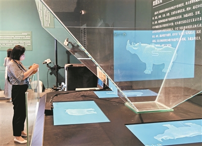 在“數(shù)說犀尊”展覽上,展廳綜合運(yùn)用了高清三維掃描、超高清顯示、人工智能、紅外感應(yīng)、增強(qiáng)現(xiàn)實(shí)等科技手段展示文物研究成果。科技日報(bào)記者 洪星攝