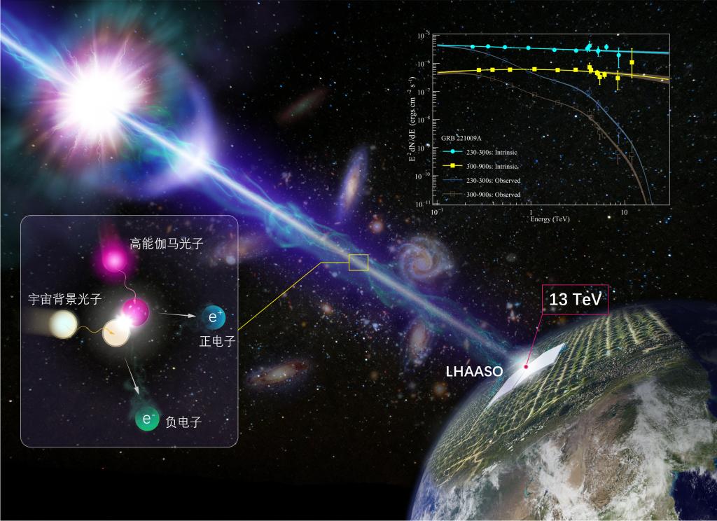 “拉索”精確測(cè)量GRB 221009A高能輻射能譜示意圖。(中國科學(xué)院高能物理研究所供圖)