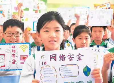 河北省邯鄲市永年區(qū)洺州小學(xué)的孩子們展示網(wǎng)絡(luò)安全手抄報。胡高雷攝(人民視覺)