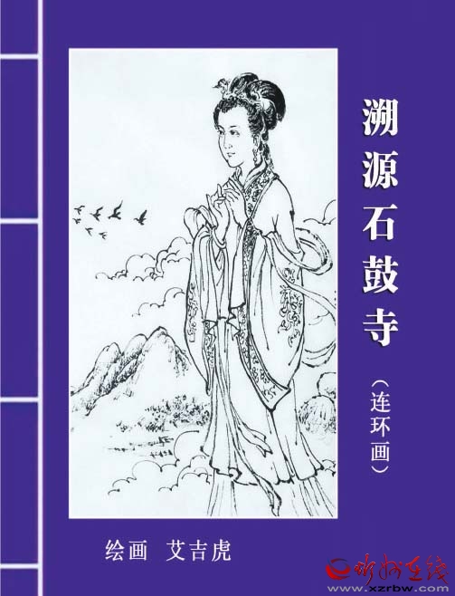 他的“小人書”插畫自帶一種中國(guó)傳統(tǒng)故事的“煙火氣”,這種寫實(shí)的筆觸體現(xiàn)了艾吉虎對(duì)生活細(xì)節(jié)的凝視。人物線描準(zhǔn)確地表現(xiàn)出主人公的身體結(jié)構(gòu)和肌肉起伏,這樣的細(xì)節(jié)表現(xiàn)正是來(lái)源于他對(duì)日常生活的細(xì)致觀察。《郝隆曬書》是《世說(shuō)新語(yǔ)》里記載的一個(gè)成語(yǔ)故事。原平名士郝隆七月七日出日中仰臥,人問(wèn)其故,答曰:“我曬書?!爆F(xiàn)指人腹中裝書,很有學(xué)問(wèn)。在“小人書”中,郝隆解開衣扣袒胸露乳曬著太陽(yáng),面露微笑而不失幽默之態(tài),他桀驁不馴的個(gè)性通過(guò)艾吉虎的畫筆表現(xiàn)得淋漓盡致?!独驵l(xiāng)原平歷史故事》更顯精煉,作品純用白描,線條疏密有致,構(gòu)圖簡(jiǎn)潔大氣,以有限的畫面給人以無(wú)限的想象,將梨鄉(xiāng)原平的美景盡鋪眼前,令人回味無(wú)窮。