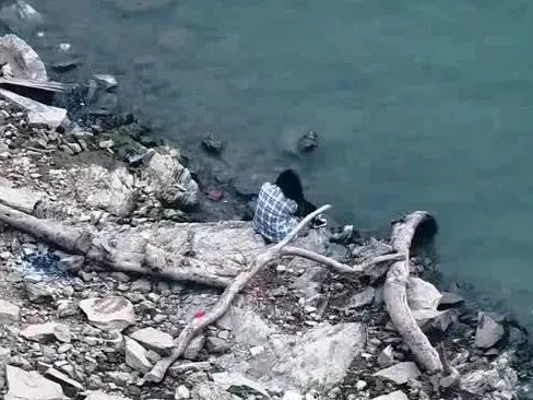△小韋坐在河邊