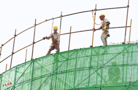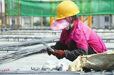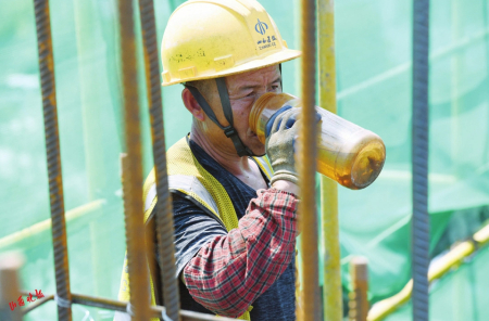 當(dāng)日,是入伏第一天,意味著開始進(jìn)入一年中最熱的時(shí)候。在熱火朝天的施工現(xiàn)場,工人師傅們埋頭苦干,他們雖然戴著自制遮陽帽、冰袖,身旁放著水壺,但一小會(huì)兒工夫就會(huì)汗流浹背?!斑@樣的杯子,我每天要喝好幾杯水。”天氣太熱,來自四川樂山的林英把杯子里的水一飲而盡。黝黑的皮膚、如雨的汗水、潮濕的后背……當(dāng)大多數(shù)人避暑納涼時(shí),不少勞動(dòng)者卻辛勤地?fù)]灑著汗水,堅(jiān)守在施工一線。在這個(gè)工地上,有很多和林英一樣的打工人,他們來自全國各地,用青春和汗水建設(shè)美麗山西。