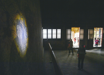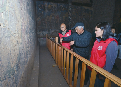 4月10日,山西省文化遺產(chǎn)規(guī)劃研究院勘察設(shè)計(jì)團(tuán)隊(duì)在高平仙翁廟正殿內(nèi)借助冷光源進(jìn)行壁畫病害調(diào)查。