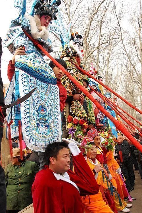 在有些地區(qū),“閣”甚至被搭成了一個(gè)“戲臺(tái)”般的樣子,除去人物還有布景,能使人一眼就看出“閣”上的故事。抬閣的壯漢也增加到八名一組,大家需要在行走中保持步調(diào)一致的同時(shí),大力顛簸,技術(shù)含量極高。這項(xiàng)表演至今都是各地春節(jié)社火表演中壓軸的重頭戲。