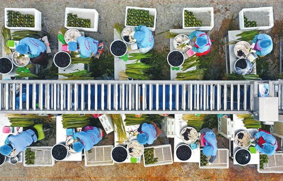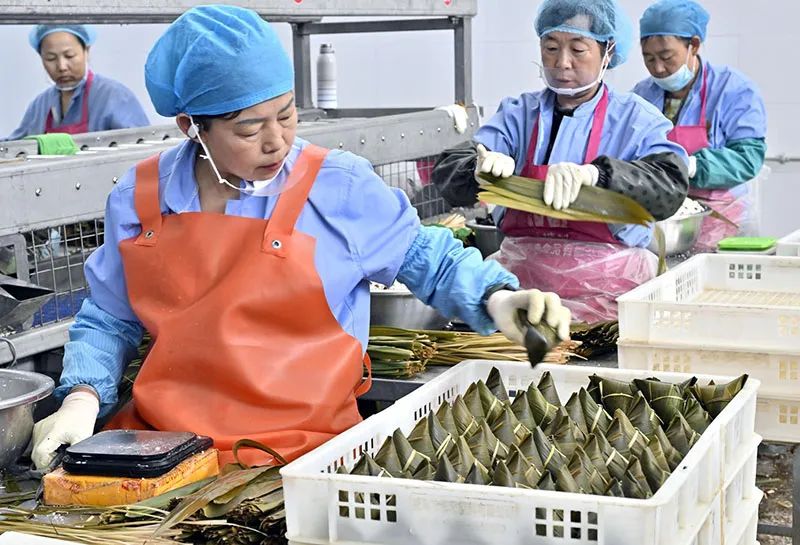 二是工藝出“粽”?!叭斎~,三顆棗,一百克糯米不能少?!鼻嗵留兆硬粌H全手工傳統(tǒng)工藝包制,更輔以現(xiàn)代高溫滅菌和真空包裝技術,傳統(tǒng)與現(xiàn)代相結合,讓青塘粽子美味更健康。