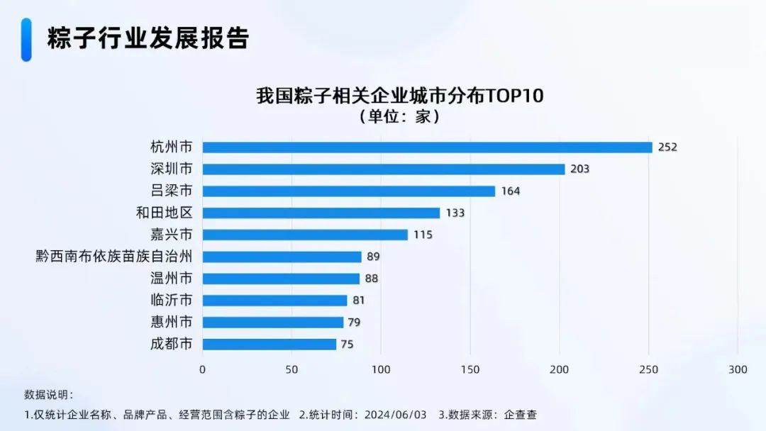 粽子行業(yè)發(fā)展報告中顯示,呂梁市在我國粽子相關企業(yè)城市分布中,排到了第三名。