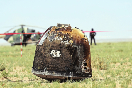 6月25日14時(shí)7分,嫦娥六號返回器攜帶來自月背的月球樣品安全著陸在內(nèi)蒙古四子王旗預(yù)定區(qū)域。新華社發(fā)