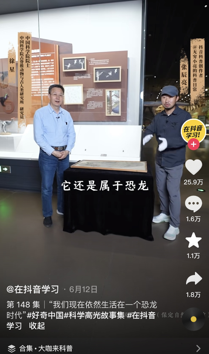 前不久,中國科學(xué)院院士徐星和《博物》雜志副主編、《中國國家地理》融媒體中心主任“無窮小亮”,帶著600多萬網(wǎng)友“云逛”中國古動物館(保定自然博物館),那寓教于“逛”的科普形式、極具網(wǎng)感的科普語言,就讓那些古生物知識從課本里鉆了出來,變得易懂可感。