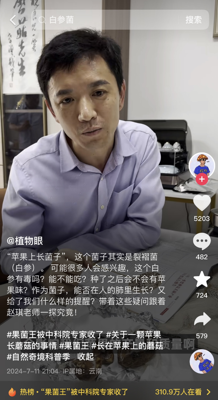 將蘋果長蘑菇跟網(wǎng)友長知識連接起來的,是涉事科研人員有料且有趣的科普。他們來得正是時(shí)候的科普,讓此事在“長菌蘋果”自帶的獵奇色彩和“千里求菌”的戲劇性之外,多了些社會價(jià)值:在他們順勢科普前,“長菌蘋果”留給網(wǎng)友的就是個(gè)“果菌王”的網(wǎng)梗;在他們展開科普后,“長菌蘋果”讓很多網(wǎng)友頭一次知道了“裂褶菌(又叫白參)”的存在。
