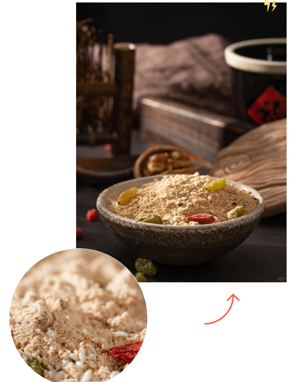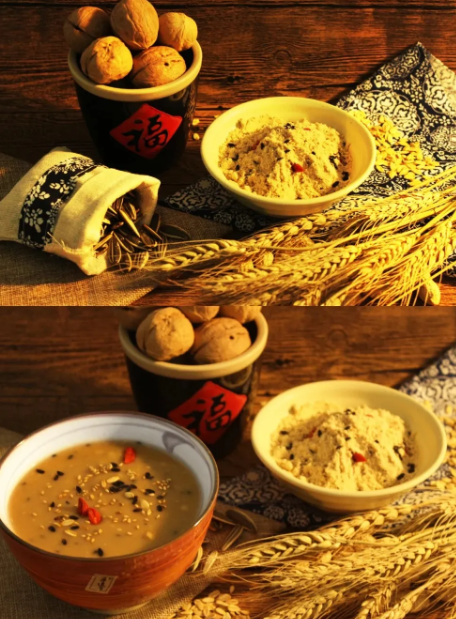 這款小吃由五谷雜糧粉和堅(jiān)果炒制而成,加入開(kāi)水即可飲用,無(wú)論是搭配油條還是咸菜,都別有一番風(fēng)味。