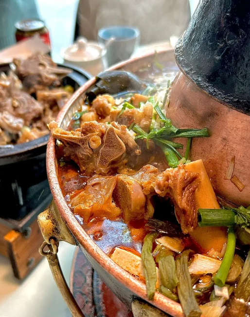 冬天怎么能少了羊肉呢?山西的羊肉不僅美味,還有各種吃法。大塊羊肉與胡蘿卜、土豆、洋蔥等配菜一起放入大鍋中燉煮,只加少許鹽、花椒、姜片等基礎(chǔ)調(diào)料。燉出來(lái)的羊肉,色澤溫潤(rùn)如玉,口感醇厚無(wú)比。