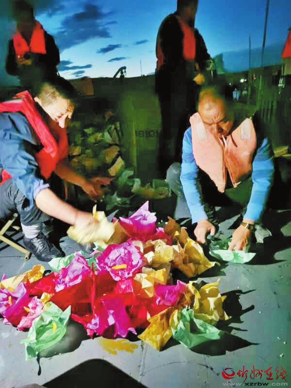 一盞盞花燈放入河中。色彩艷麗的河燈順著黃河主航道向前漂移,燈點綴河,河簇?fù)頍簦瑹o比壯觀。從早先放365盞燈,到現(xiàn)在的3650盞燈,場面更加宏大輝煌。