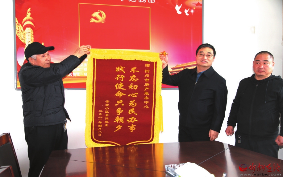 本報訊 4月14日上午,市房產(chǎn)服務(wù)中心三樓會議室內(nèi),云北小區(qū)居民和物業(yè)公司員工十幾個人,滿懷著感激之情,手捧著寫有“不忘初心為民辦事、踐行使命只爭朝夕”的一面錦旗,送給了市房產(chǎn)服務(wù)中心,落款為:云北小區(qū)全體居民。