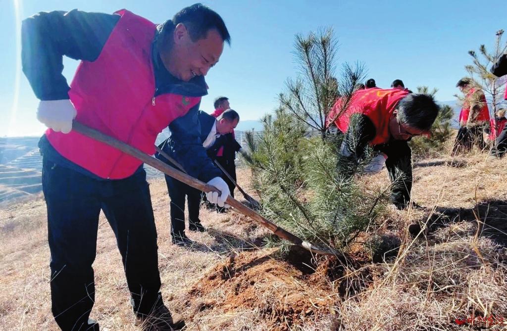 揮鍬鏟土、扶木正枝、培土澆水……兩人一組、三人一隊(duì),現(xiàn)場(chǎng)一片熱火朝天的勞動(dòng)景象。大家干勁十足、分工明確、配合默契,每一道工序都一絲不茍,每個(gè)流程都認(rèn)真細(xì)致。經(jīng)過大家的努力,一棵棵新栽種的樹苗迎風(fēng)挺立,在明媚的春光中煥發(fā)出勃勃生機(jī)。